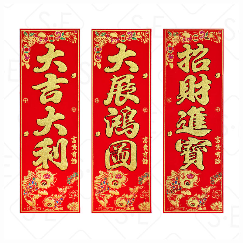 祝福詞範圍廣泛,如:招財進寶、恭喜發財、大家恭喜、吉祥如意、新春大吉、生意興隆、出入平安、五福臨門、開工大吉、開市大吉…等,不論是居家、店面、各行各業公司行號皆適用。
