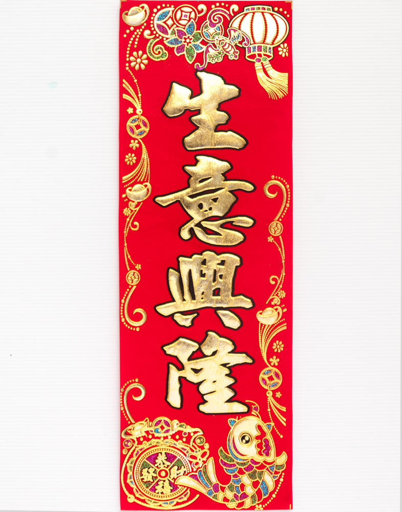 於農曆新年時,揮筆將祝福詞寫在紅色紙上,通常為黑色或金色字。